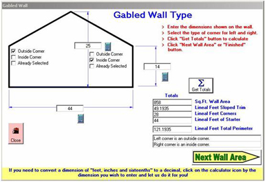 To accomplish complex engineering and estimating of product data only required the user to fill in the actual dimensions of the wall for which they needed product and the engineering / estimating module did all the rest of the work. Small pop up calculators were provided to change feet / inches to decimal values or vice versa.