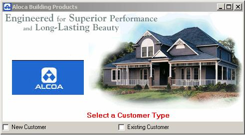 The opening screen on the following marketing / sales / engineering / proposal module, like all subsequent screens and all other modules we designed for them, is branded with the Alcoa logo and the Alcoa marketing home picture. The system was tied to the distributor's corporate database for both product availability, pricing as well as customer data. The distributor's database was tied to Alcoa Corporate database for information sharing as well as new product inventory, as well as pricing and engineering changes.